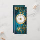 Turquoise, textured, steampunk background with brass and gold gears, a silver key and the clock. Steampunk style.
