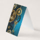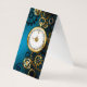 Turquoise, textured, steampunk background with brass and gold gears, a silver key and the clock. Steampunk style.