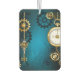 Turquoise, textured, steampunk background with brass and gold gears, a silver key and the clock. Steampunk style.