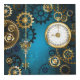 Turquoise, textured, steampunk background with brass and gold gears, a silver key and the clock. Steampunk style.