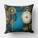 Steampun turquoise Background with Gears Cushion