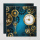 Steampun turquoise Background with Gears Holiday Card