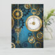 Steampun turquoise Background with Gears Invitation