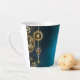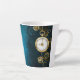Turquoise, textured, steampunk background with brass and gold gears, a silver key and the clock. Steampunk style.
