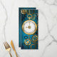 Turquoise, textured, steampunk background with brass and gold gears, a silver key and the clock. Steampunk style.