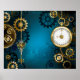 Steampun turquoise Background with Gears Poster
