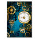 Turquoise, textured, steampunk background with brass and gold gears, a silver key and the clock. Steampunk style.