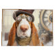 Cute tan and white basset hound - steampunk style for the holidays.