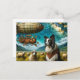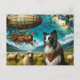 Steampunk Border Collie With Sheep and Blimp Postcard
