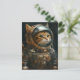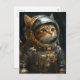 Steampunk cat astronaut postcard. Whimsical image of a tabby cute kitty in a steampunk astronaut costume.