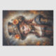 A breathtakingly beautiful woman graces this decoupage tissue paper, dressed in a refined steampunk ensemble that blends Victorian elegance with mechanical charm. Her piercing gaze, elaborate attire, and signature top hat create an air of intrigue, while her flowing red locks add warmth and allure. The subtly faded background allows for effortless integration into various artistic compositions, making it an ideal choice for sophisticated and imaginative decoupage work.