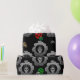 Cool wrapping paper with a steampunk theme. The background is deep black and the design includes skulls and gears. Christmas colors of red, green, gold and silver make this gift wrap perfect for the holidays and beyond.