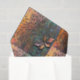 Abstract textured painting of a circuit board with a leaf and flower motif, in the style of steampunk, with vibrant colours and a metallic copper patina.