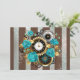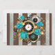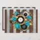 Steampunk Clock and Turquoise Roses on Striped Announcement