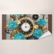 Steampunk Clock and Turquoise Roses on Striped Bath Towel