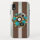 Steampunk Clock and Turquoise Roses on Striped Case-Mate iPhone Case