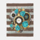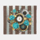 Steampunk Clock and Turquoise Roses on Striped Fleece Blanket