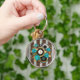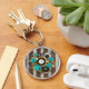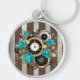 Steampunk Clock and Turquoise Roses on Striped Key Ring