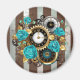Steampunk Clock and Turquoise Roses on Striped Magnet