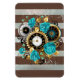 Steampunk Clock and Turquoise Roses on Striped Magnet