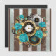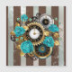 Steampunk Clock and Turquoise Roses on Striped Magnetic Invitation