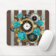 Steampunk Clock and Turquoise Roses on Striped Mouse Pad