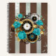 Steampunk Clock and Turquoise Roses on Striped Notebook
