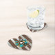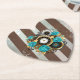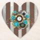 Steampunk Clock and Turquoise Roses on Striped Paper Coaster