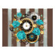 Steampunk Clock and Turquoise Roses on Striped Photo Print