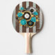 Steampunk Clock and Turquoise Roses on Striped Ping Pong Paddle