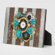 Steampunk Clock and Turquoise Roses on Striped Plaque