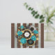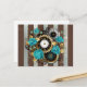 Steampunk Clock and Turquoise Roses on Striped Postcard