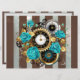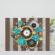 Steampunk Clock and Turquoise Roses on Striped Save The Date