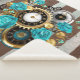 Steampunk Clock and Turquoise Roses on Striped Sherpa Blanket