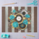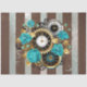 Steampunk Clock and Turquoise Roses on Striped Tissue Paper