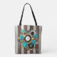 Steampunk Clock and Turquoise Roses on Striped Tote Bag