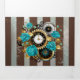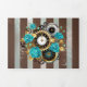 Steampunk Clock and Turquoise Roses on Striped Tri-Fold Card
