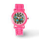 Steampunk Clock and Turquoise Roses on Striped Watch