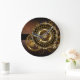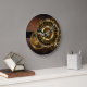 Antique, fantastic watches with gold and brass gears on a brown, rusty background. Steampunk style.
