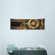 Antique, fantastic watches with gold and brass gears on a brown, rusty background. Steampunk style.