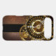 Antique, fantastic watches with gold and brass gears on a brown, rusty background. Steampunk style.