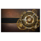 Antique, fantastic watches with gold and brass gears on a brown, rusty background. Steampunk style.