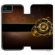 Antique, fantastic watches with gold and brass gears on a brown, rusty background. Steampunk style.