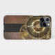 Antique, fantastic watches with gold and brass gears on a brown, rusty background. Steampunk style.
