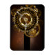 Antique, fantastic watches with gold and brass gears on a brown, rusty background. Steampunk style.