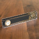 The nameplate looked exactly as pictured, I was very happy with this product! It also arrived promptly after placing my order! I would definitely recommend this product! The printing turned out exactly as I designed it, very pleased!