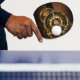 Antique, fantastic watches with gold and brass gears on a brown, rusty background. Steampunk style.
