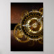 Antique, fantastic watches with gold and brass gears on a brown, rusty background. Steampunk style.