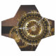 Antique, fantastic watches with gold and brass gears on a brown, rusty background. Steampunk style.