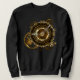 Antique, fantastic watches with gold and brass gears on a brown, rusty background. Steampunk style.